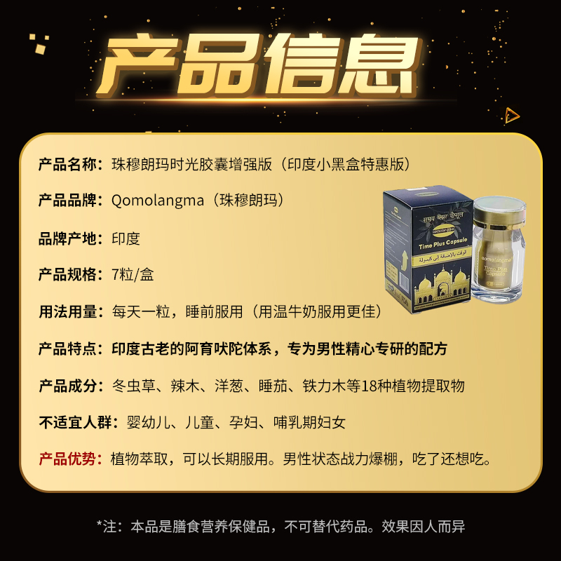 印度小黑盒特惠版 Qomolangma时光胶囊增强版Time Plus Capsule 保健进口男用有度PLUS版 7粒/盒